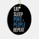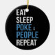 Lightweight, smooth, pure white ornament with nice sheen. Perfect size to be seen from across the room ... and to attract closer inspection! Price was great for ordering enough for the whole family! Clear, bold black design just as requested. Matches the order exactly. Just so nice!