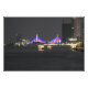 Phnom Penh, a bridge across the Mekong River and boats lit up at night in Cambodia.