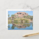 The city of Phoenix in Arizona is surrounded by many beautiful mountains. This postcard features a photograph which captures a landmark butte around Papago Park named Hole in the Rock. A short hike brings a huge reward of the view of the city of Phoenix. The red rocks are reflected in the calm and peaceful lake. Palm trees edge the water giving this photo the distinctive look of an oasis.