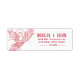 A unique address label to compliment the dragon and phoenix wedding suite. This version features a red outline illustration of a phoenix against a white backdrop. Besides this is your unique information in red.
