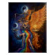 A symbolic spiritual art poster featuring a phoenix rising above a lotus — representing balance, renewal, and inner strength.