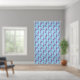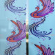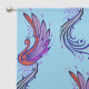 Phoenix motif set on a light blue backdrop. sheer curtains