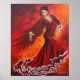 In lush red velvet, is this flamenco dancer imagining herself as an exotic bird?