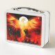 This is a standard metal lunchbox that appears to work just fine. We designed this box ourselves with an uploaded photo and custom text on the front and back. It looks absolutely beautiful except the front of the lunchbox is not centered like it shows in the photo. The print borders don't align with the inset flat part of the box where the preview photo online showed it perfectly centered in there. The back looks nice and centered though.