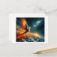 A majestic phoenix with fiery orange and red plumage rises against a cosmic backdrop, creating an ethereal scene. Spirals of stardust and celestial light surround the bird, illuminating its powerful form.