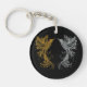 decorative abstract lineart design of two phoenix birds in yellow and white colors facing each other on a black acrylic keychain