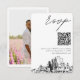 Classic minimalist script wedding RSVP enclosure card personalized with your information and a QR code. Change the QR code link easily in the personalization field without having to separately create and upload a new one. Enter the Zazzle design tool for further customization such as text placement or to remove the photo on the back. Be sure to compare the different paper types to select your favorite texture.