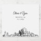 Modern Phoenix skyline personalized champagne label. The design showcases a stunning sketch with the ability to customize your names and exact location. Enter the Zazzle design tool for additional customizations.