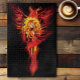 Woman that is a flame with wings. A phoenix woman in red, orange and yellow flame in a backdrop of black