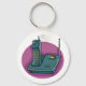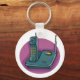 This design is a phone and answering machine. The phone is sitting in the cradle of the answering machine. This phone and answering machine design looks great on this Keychain