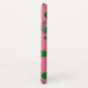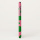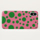 Phone case with green circles on a pink background