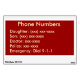 Help your loved one remember common phone numbers by posting this removeable phone list wall decal on the wall near your loved one's phone. If your loved one is quite frail, you may want to post a phone list in each romm that your loved one has a telephone (e.g., living room, kitchen, and bedroom). Click on the orange Customize It tab, then select Change Text to type in your phone number information. To change the background color, click on Edit and select Background.