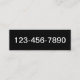 This phone number business card has the number on the front. The white numerals are large and the only thing on the front. The back has placeholder text to change to your name.