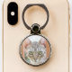 Striped kitten is looking through bars of a fence. Green eyes, brown nose and black, white and brown stripes with usual "M" marking on forehead.