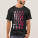 Ombre tones of pink typography phonetic alphabet A for Alfa trough to G for Golf as used by the police, NATO, etc. Fun on trend graphic tees.