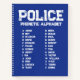 The bold cover features the full A–Z police alphabet for instant reference, while the lined pages inside provide space for training notes, communication practice, codes, procedures, or classroom study. Durable spiral binding makes it perfect for everyday use at the academy, on patrol, or at home.