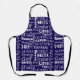 Cool dark blue apron printed with a typographic pattern of the phonetic alphabet. Great gift idea for anyone who uses the phonetic alphabet for work or in their hobbies.