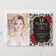 Photo 15th Birthday Party Red Gold Black Damask Invitation