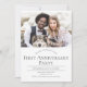A minimalist photo first wedding anniversary invitation in white with gray lettering. This invitation pairs simplicity with two personalized photos of your love. Simply add your information and photos, add this invite to your cart, and enjoy your anniversary celebration.