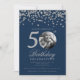 Photo 50th Birthday Silver Confetti Navy Blue Invitation