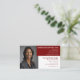 A photograph of a professional woman, with a red colorblock and white text, and a white colorblock with red text underneath creates a sharp, professional, and eye-catching business card. Easily adaptable for a variety of professions, such as financial planning, health care, photography, marketing, and many more.