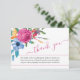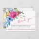 Funeral thank you card with elegant handwritten script and watercolor floral arrangements of colorful flowers. The template is set up for you to add an 'in loving memory' photo to the back with your loved one's name as well as your personalized message of thanks on the front.