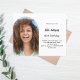 Add your own vertical size photo. An arch shaped photo frame. A chic white background color. Personalize and add a name and party details.