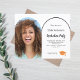 Add your own vertical size photo of the graduate. An arch shaped photo frame. A chic white background color. Personalize and add a name and party details.