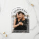 Your favorite photo covers this arch shaped Save the Date. True elegance with a soft photo frame that accents your wedding date and location but also lets the photo show through. Modern, stylish and unique. The reverse side has a thin black arch border. Add an additional message to the back including your wedding website and a QR code for convenience for your guests.