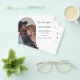 On front: Add your own vertical size photo inside the arch photo frame. A chic white background, black text. Templates for names and the date. The name and the text: Save the Date are written with a modern hand lettered style script with a heart.