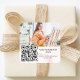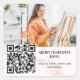 A pink marble looking background, black text. Personalize and add a photo, text, QR code to your website or a social media account.