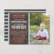 Photo Baby Boy First Birthday Wooden Background Invitation Postcard