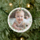 Commemorate your baby's first Christmas with this elegant, customizable round photo ceramic ornament. The design features a charming, minimalist wreath, handwriting font, offering a blend of rustic simplicity and timeless elegance. Upload your favorite photo and personalize the ornament with your baby's name, beautifully showcased in a delicate script font.