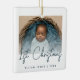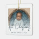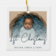Celebrate baby's first Christmas with this modern minimalist photo keepsake ornament. The teal blue text reads "1st Christmas" in trendy handwriting script. Easily replace the sample image with your favorite photo, and add baby's name and the year below. A white gradient screen helps make the text overlay pop.