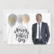 Show appreciation for dad on Father's Day this year with a special card with his photo. "Happy Father's Day" typography (matchable color, if you click on design edit). Silver, gold and faux glitter balloons on left on a white background. Text templates on back created for you.