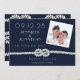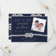 This simple photo beach Save the Date features your own photo and nautical tied ropes with your names and the words, "Are tying the knot" with classic typography on a navy blue background, and your wedding website on the back. This save the date and is perfect for the nautical, coastal, sailing themed, boat wedding, or beach wedding and it is simple, minimalist, elegant and modern. Easily personalized with your own wedding information.