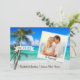 This stylish photo beach palm tree destination wedding Save the Date features your own photo and the cute saying, "It's happening" in elegant hand lettered calligraphy script (which can be changed to your own text,) on a tropical beach background with tropical palm trees . A wonderful way to invite your guests to your tropical seaside or ocean front location wedding in Hawaii, Florida, California, Mexico, or other destination wedding location.