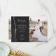 Send your family and friends a special wedding thank you with these custom photo cards. On the left, the words "thank you" appear in elegant silver gray handwriting script typography on a slate black background over a brief, editable message of thanks to your wedding guests in copperplate font, with your names below. A black watercolor agate border trimmed with faux silver glitter decorates the left edge. The reverse side provides space for a second, horizontal photo.