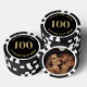 These custom poker chips feature a bold number on the front, which can be personalized with any number up to four digits. The front has a sleek black background with elegant gold text for a refined and classic look. The back includes space for a photo, making them perfect for weddings, mancaves, bachelor parties, or as a memorable gift. All text, numbers, and details can be fully customized to match your style or event theme.