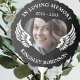 Editable black memorial balloon featuring a heart photo of your lost loved one, angel wings, the sympathy saying "in loving memory", their name, and birth/death dates.