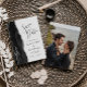 The left-hand edge of this elegant modern wedding save the date card features a black watercolor agate border trimmed with faux silver glitter. The customizable text combines charcoal gray handwriting, copperplate and italic fonts on a white background. Easily replace the sample image on the back with your own vertical photo.