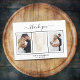 An elegant, simple wedding Thank You card from the bride and groom, personalized with your own photo. Add 3 of Your wedding photos, vertical size, the wedding date, your names, and the thank you note. A chic white background with black text and a white frame. The text: Thank you on the front and your names on the back are written with a stylish hand lettered script.