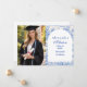 An elegant graduation celebration design featuring a delicate blue toile floral border inspired by classic European porcelain and vintage botanical prints. The intricate florals frame a clean arched center panel, creating a refined and timeless composition that highlights the graduate’s name and event details beautifully. Soft blue tones against a crisp ivory background give the design a sophisticated yet celebratory feel. Perfect for a stylish graduation gathering with a classic, romantic aesthetic.