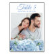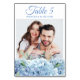 Photo Table Numbers with Blue Hydrangea floral decoration for you to use at your reception, rehearsal, or bridal showers. You can have up to two pictures.