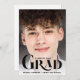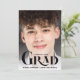 Announce your graduate's achievements with this modern graduation announcement featuring his or her favorite photo with "GRAD" written on top in large bold trendy typography. Easily add his or her name, school and class year.