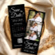 This modern black design features three customizable photo booth–style images, classic script typography, a clean calendar highlighting your date, and a built-in QR code area for easy access to your wedding website or photo gallery.
