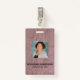 Modern photo business ID identification card with barcode over pink snakeskin pattern imitation. Additional information can be added to the backside of this business ID badge