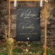 Simple minimalist elegant real gold foil calligraphy script wedding welcome sign on black
