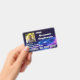 Add a photo of your car or yourself to this modern blue, purple and black neon style light ai generative artwork cool road theme id badge for a car driving service or driver. Let riders and customers know you are the rideshare service driver by wearing or displaying this cool gear on your person or car! Ridesharing is the big new eco way to travel by hailing a car, taxi or limo service through your smartphone and helping a fellow city dweller make money at the same time.