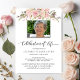 My condolences on your loss. Exquisite Floral Photo Memorial Service Announcement, Funeral Service Announcement invitation card. A practical and delicate way to inform family and friends of funeral or gathering plans celebrating the life of your departed loved one. Card with loved one photograph showcased with exquisite floral arrangement with flowers in soft blush pink and mauve purple tones. Use of modern hand written Calligraphy details. Back of card with gorgeous delicate floral pattern. Coordinating funeral guestbook and thank you cards available. Part of our Funeral products.